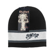 Bullet - Smart & Cool Beanie - Svart färg med vita och grå ränder & svart text